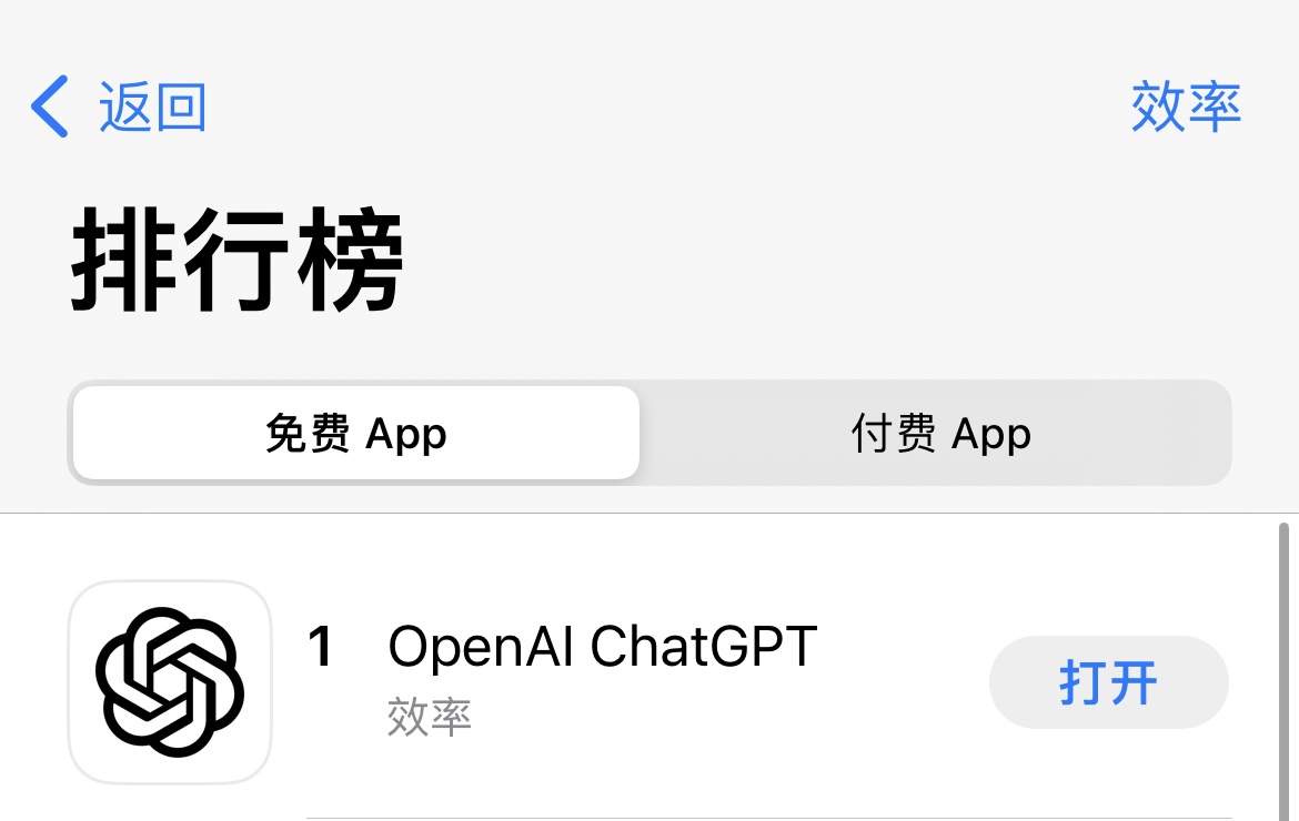 ChatGPT上架仅一天就已经处于效率类型免费App第一名,可见其火爆程度!